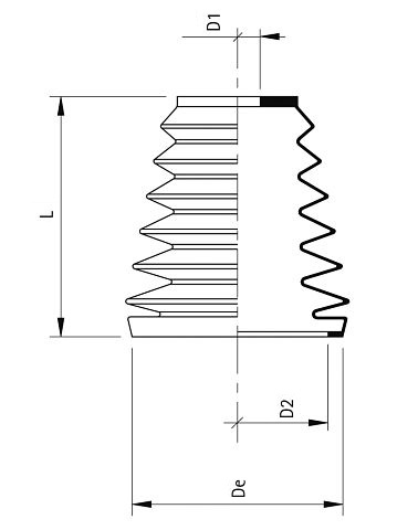 2. Knowing that, you can suppose the quote D1 (tighter mouth), D2 (larger mouth), De (overall dimensions) and L (length at rest) of the bellow, and let us know them;